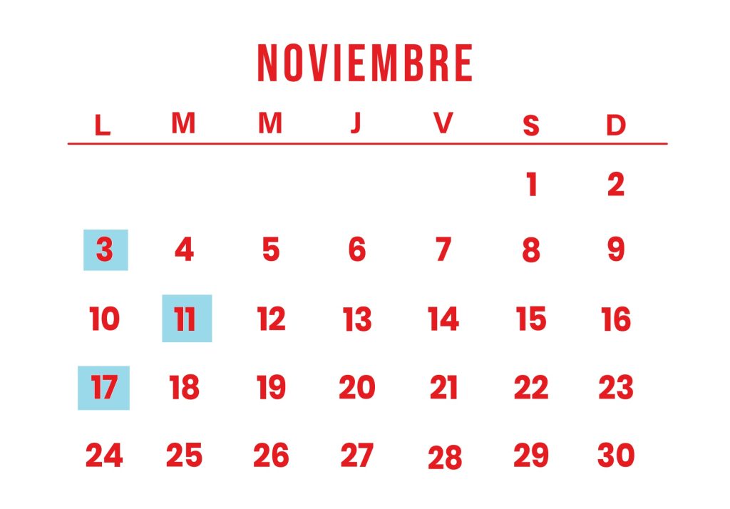 3/11 y 11/11 de 9h a 15h | 17/11 de 9h a 18h