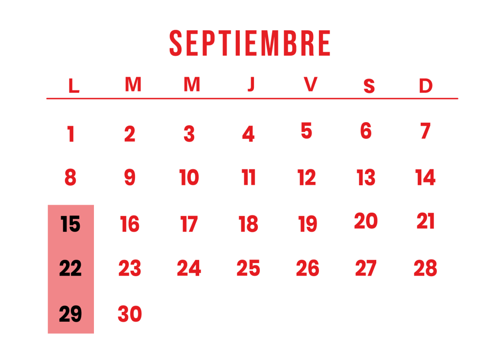 15, 22 y 29 DE SEPTIEMBRE