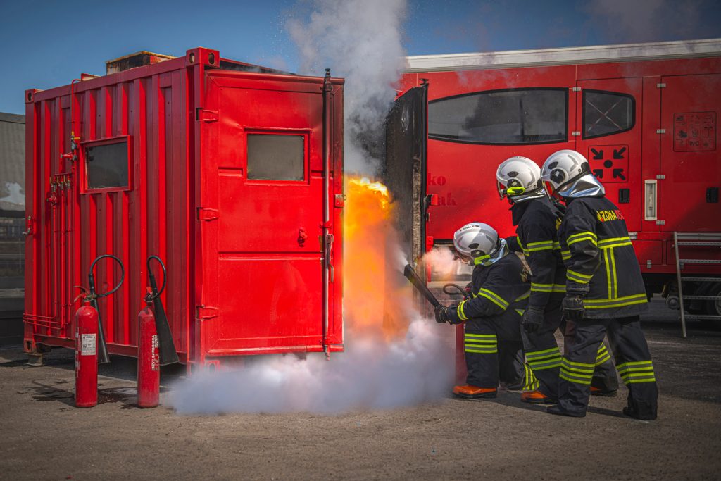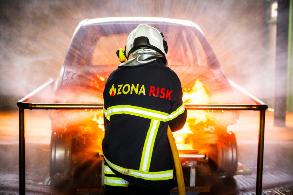 Espacios indoor dotados de 6 escenarios de fuego activo para la práctica con distintos tipos de extintores y bocas de incendio equipadas (BIE): simulador de incendio en oficina, cocina, vivienda y edificio de 3 plantas con 16 estancias, escaleras interiores, circuitos de evacuación con humo para la práctica con equipos de respiración autónoma, etc.